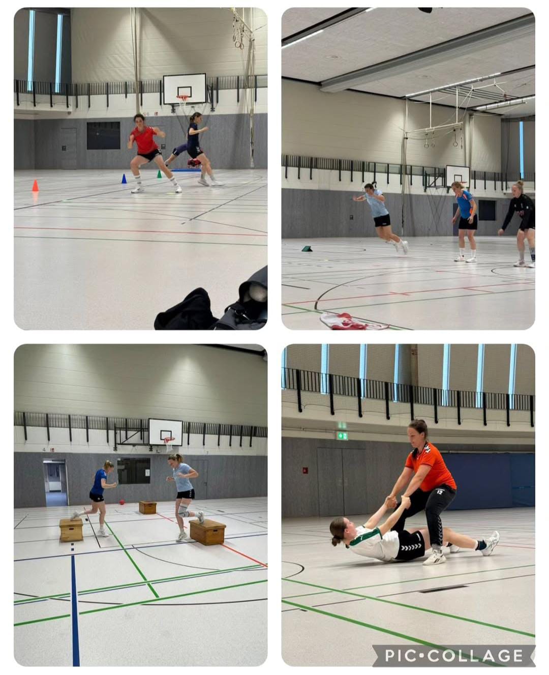In den Einheiten gab es verschiedene Schwerpunkte, an denen intensiv gearbeitet wurde. Neben Spinningeinheit Nr. 2 kamen die Außen zum Zug und es wurden die Beine der Spielerinnen der 1. Damen gefordert und an der Sprungkraft gearbeitet. Außerdem wurde das Zusammenspiel zwischen der Abwehr und den Torhüterinnen fokussiert.
